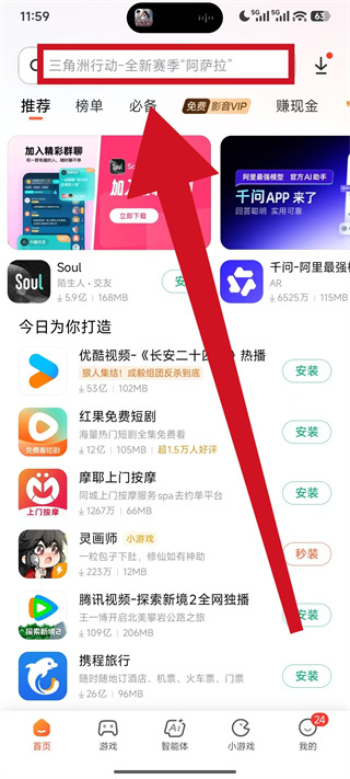 1、打开小米应用商店,在首页顶部的搜索栏中,输入想要下载的应用软件名称。
