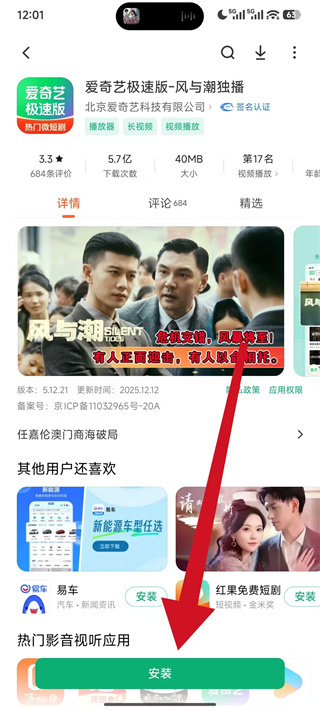 4、点击该软件对应的安装,等待应用下载并自动安装完成即可。