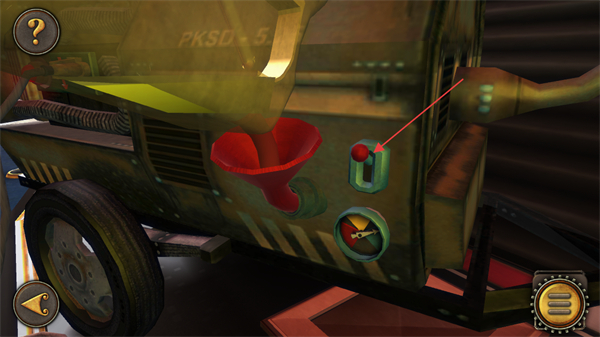3、定位到设备上的红色按钮,点击此按钮来激活设备的对应功能,推动关卡进程向前推进。