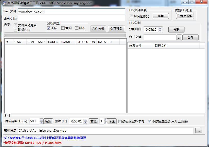 打开软件,把要处理的 flv 视频文件,用鼠标拖入到SinaHigh中,点击“文件分析”