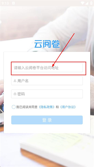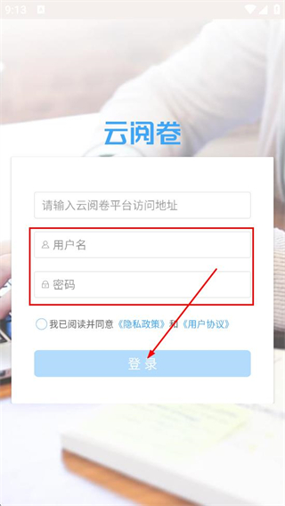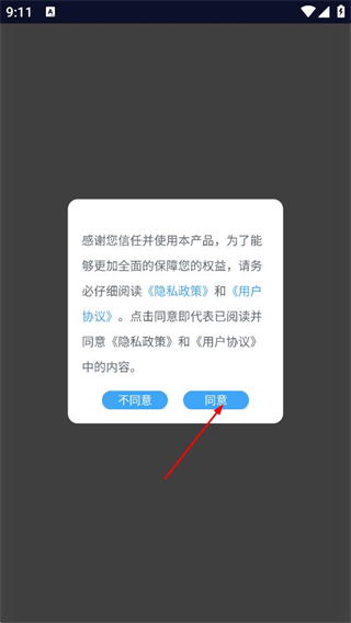1、在隐私政策和用户协议弹窗中,点击同意,进入云问卷登录页面。