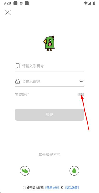 1、在登录页面点击注册选项,进入注册账号页面。