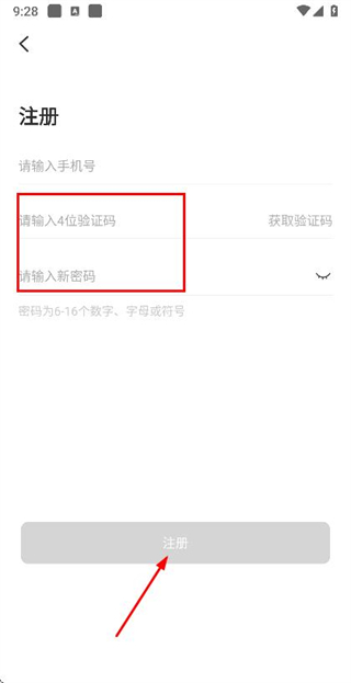 3、在注册账号页面填写验证码和密码,勾选协议后点击注册完成账号注册操作。