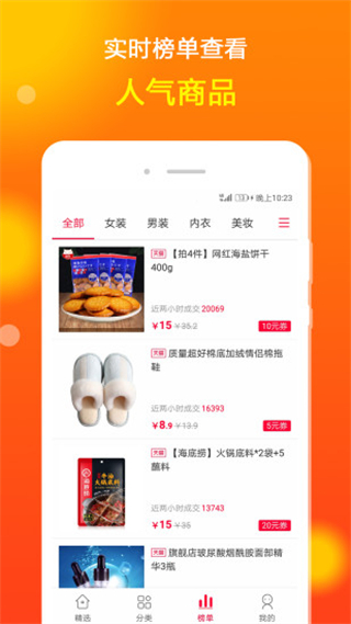 1、在首页点击底部的榜单选项,进入榜单商品列表页面。