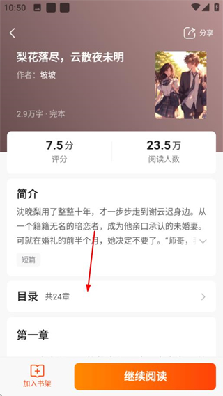 2、在小说详情页面,点击目录选项,展开该小说的章节列表。