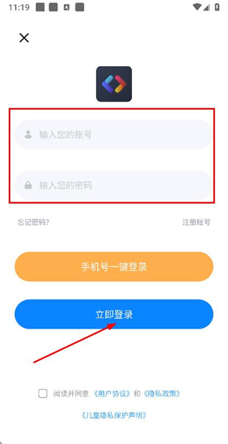 3、在登录页面填写账号和密码,勾选协议后,点击登录完成账号登录操作。