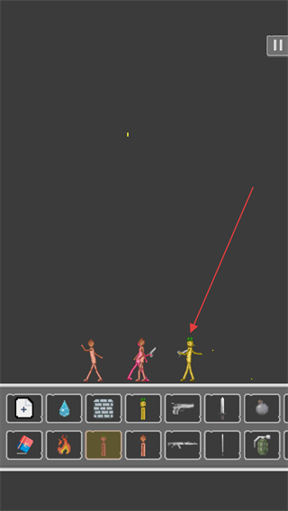 3、选中下方人物或物品后,点击上方黑色部分进行放置,放置后人物会自由行动并且会使用地上的物品。