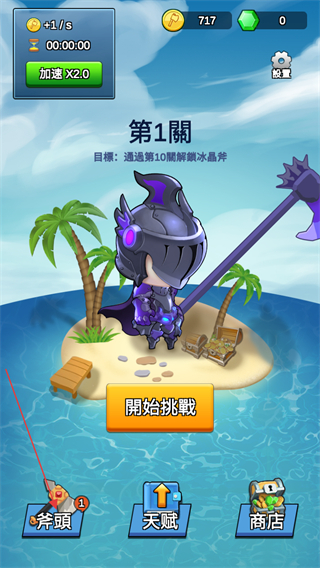 1、当前处于游戏主页界面,点击左下角的斧头选项进入斧头仓库,也可以点击界面中的开始挑战按钮进入挑战。