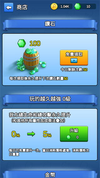 2、进入斧头界面后,找到当前使用中的1级斧头,点击升級1次按钮,消耗金币提升斧头等级,以便增强后续挑战的战力。