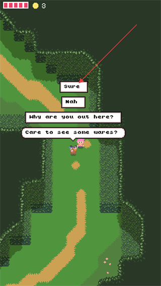 3、在当前对话界面中,选择Sure选项,响应NPC角色的询问,以推进后续的交互流程。