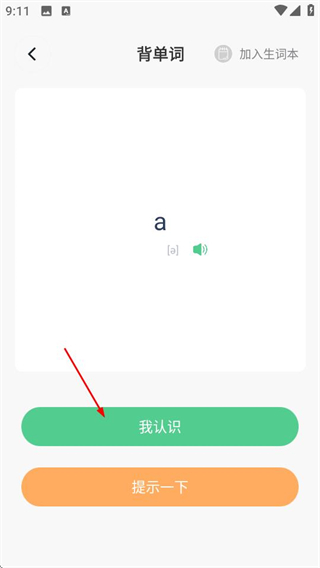 3、在背单词页面,点击我认识按钮,完成当前单词的背诵操作。