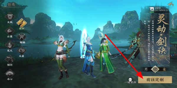 1、选择职业与性别后,点击前往定制按钮,完成角色创建的相关设置,开启游戏的冒险旅程。