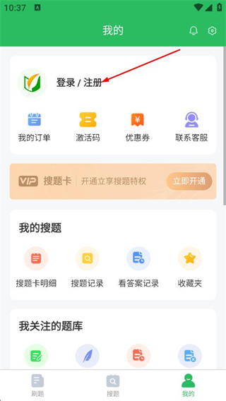 2、在个人页面中,点击登录/注册区域,进入登录选择页面。