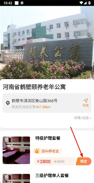 3、在机构详情页面点击目标套餐旁的预定按钮,进入该套餐的预定流程。