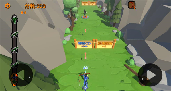 角色自动向前推进无法后退,需时刻关注两侧敌人动向,通过精准移动调整攻击目标与躲避伤害,在持续前进中体验紧张又休闲的战斗节奏。