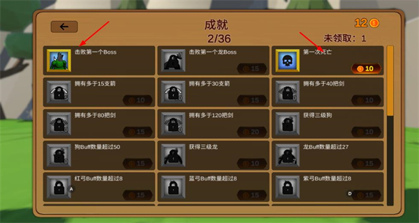 2、在成就界面,完成对应目标后,领取对应的金币奖励,解锁更多游戏内容。