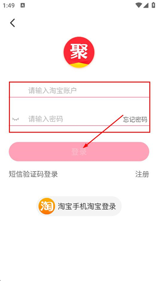 3、在聚划算登录页面,填写对应的账号和密码,点击登录,进入个人账号页面。