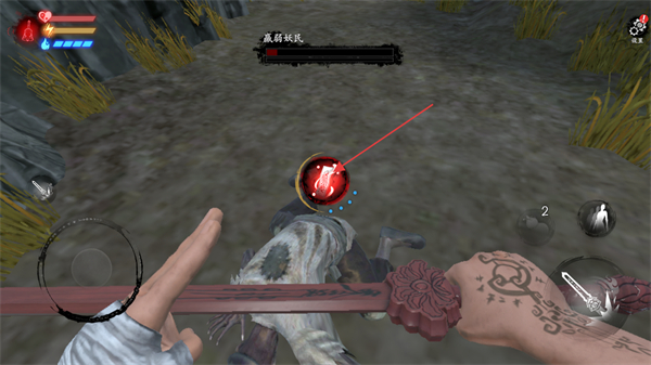 1、在该游戏场景中,将视角对准前方出现的敌人,通过界面左侧的移动区域调整位置,为后续攻击该敌人做好准备。