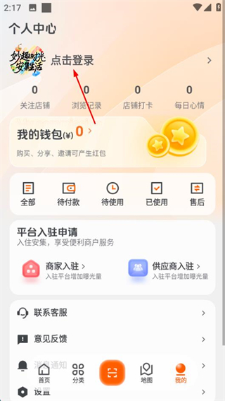 2、在个人中心页面,点击点击登录区域,进入登录选择页面。