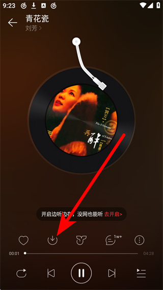 4、在歌曲播放页面,点击下方的下载图标,即可将歌曲下载到本地。