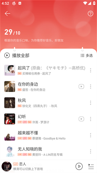 3、智能个性化推荐:基于多维度数据,每日更新每日推荐、私人FM、心动模式三大核心推荐板块,还能根据场景推送定制化内容,让用户快速发现符合喜好的优质音乐。