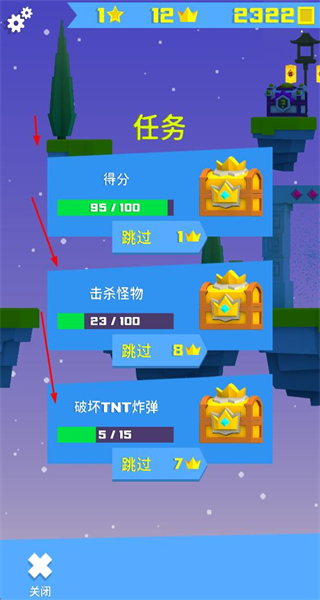3、在任务界面查看当前进度,可选择跳过消耗对应道具直接完成任务,获取宝箱奖励。