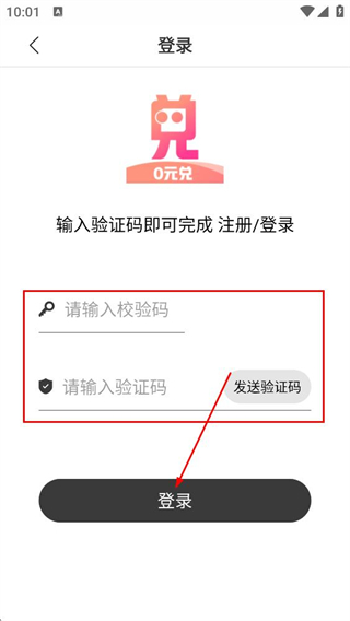 4、在填写页面,填写校验码,点击发送验证码并填入收到的验证码,点击登录,完成账号登录。
