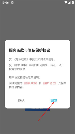 1、在服务条款与隐私保护协议弹窗中,点击同意,进入APP首页。