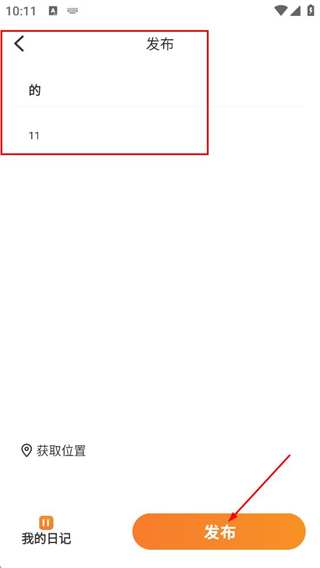 4、在发布页面,填写内容后点击底部的发布按钮,完成今日内容的记录发布。