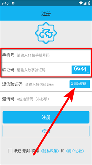 4、在输入框,输入短信验证码,勾选后,点击注册,完成账号注册。