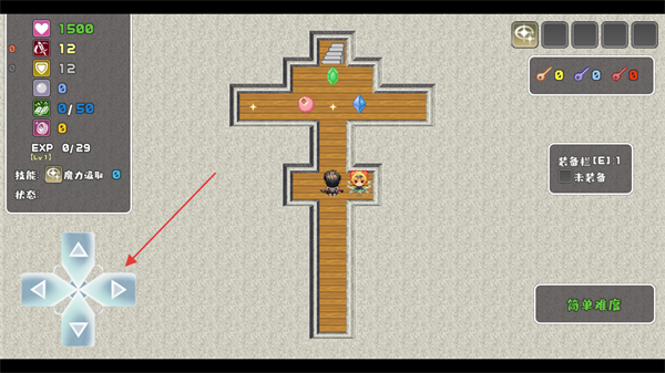 2、操控方向键移动角色,收集地图中的宝石类道具,提升角色属性。