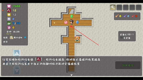 3、了解红宝石提升攻击的效果,攻击需高于敌人防御才生效,继续探索。