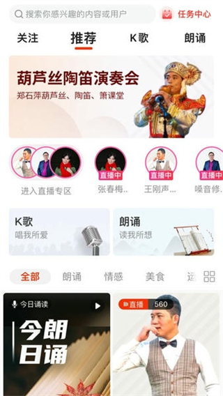 涵盖多元兴趣品类,细分通俗美声民族唱法、诗词散文朗诵等方向,内容覆盖入门到进阶全阶段,满足不同兴趣偏好与水平用户的探索需求。
