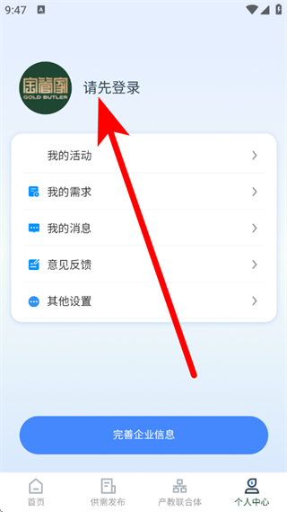 2、在个人中心页面,点击请先登录,进入登录相关页面。