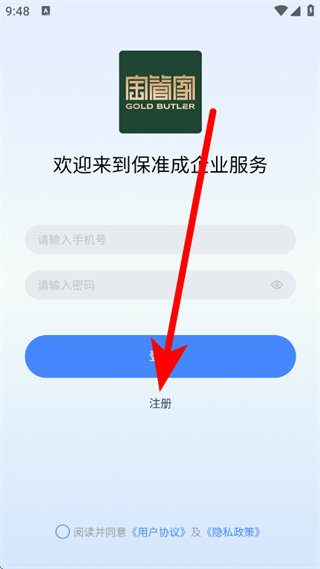 3、在欢迎登录页面,点击注册,进入注册页面。