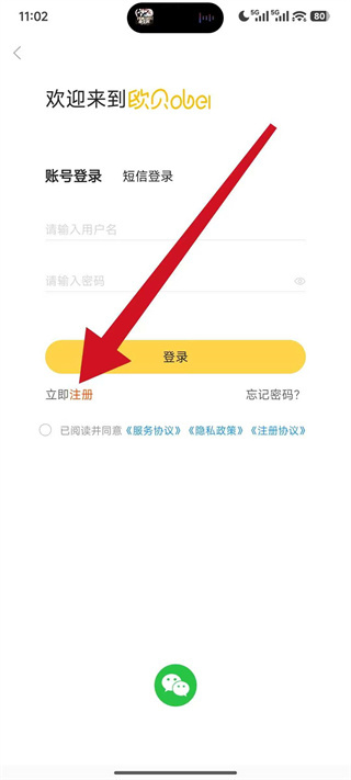 1、打开欧贝采购平台,进入首页后点击底部的去登录,进入账号登录页面。