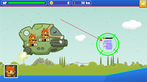 2、部署新猫咪到飞船空位,增强火力,击败右侧红色敌人,推进至41km。