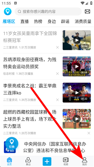 1、在二三里新闻,点击底部我的,进入个人页面。