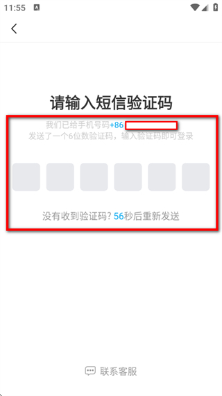 4、在请输入短信验证码页面,输入验证码,完成登录。