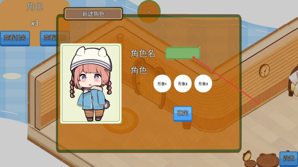 2、在新建角色界面中,填写角色名并选定对应形象选项后,点击确定按钮即可完成新角色的创建流程。
