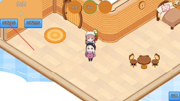 3、完成角色创建后进入场景,界面显示角色名依依,仍可通过点击查看任务推进游戏,还能操作角色相关状态。