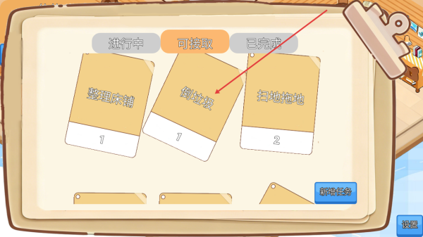 4、进入查看任界面后,在可接取标签下可接取倒垃圾等任务,也能点击新增任务获取更多任务推进进程。