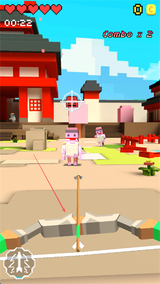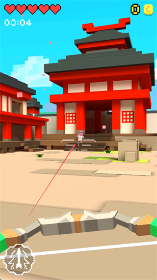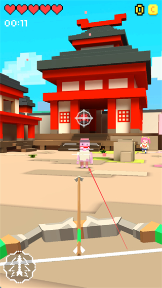 1、操控弓箭瞄准场景中的目标,准备射击,关注左上角生命值和计时。
