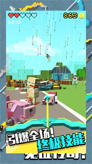 3、末日生存主题与轻松像素风格形成反差,既保留射击游戏的热血感,又通过诙谐画风营造出独特的游玩氛围。