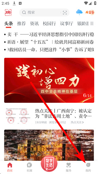 1、打开瑞安新闻,在首页底部导航栏点击我的,进入个人页面。