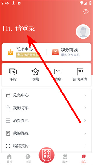 2、在个人页面的登录区域点击,进入登录选择页面。