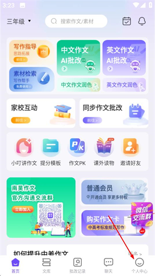 1、在南昊作文首页点击个人中心选项,进入个人中心页面。