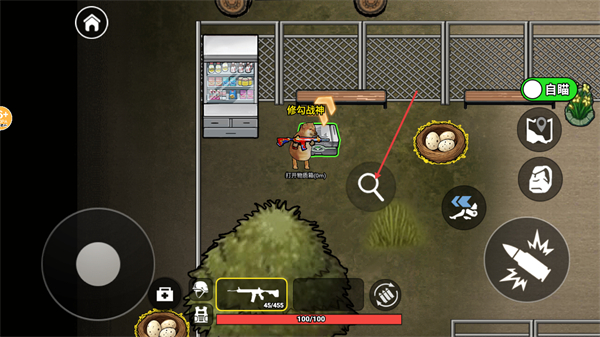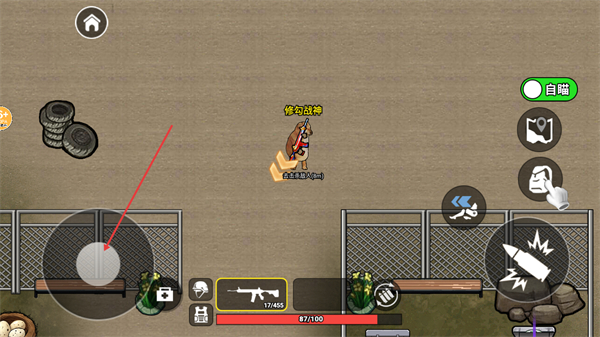 1、通过左下角方向键操控修勾战神移动,开启自瞄功能,前往8m外的敌人位置执行击杀任务。