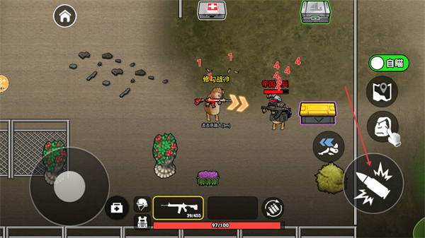 4、接近场景内的敌人后,用武器发起攻击,同时点击射击按钮开火攻击敌人,提升击杀效率以完成目标。