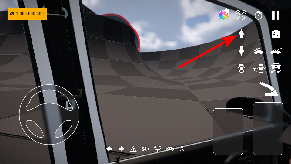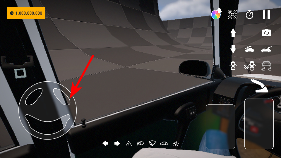 1、在环形赛道驾驶时,操作红色箭头指向的方向盘区域,控制车辆转向,保持车身贴合环形赛道内壁,稳定通过特技路段。